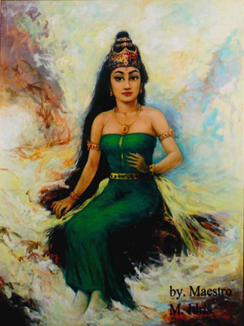 Ia dipercaya menguasai Laut Selatan dalam mitos Sunda dan Jawa . Dalam mitologi Jawa, Kanjeng Ratu Kidul merupakan ciptaan dari Dewa Kaping Telu yang mengisi alam kehidupan sebagai dewi padi dan dewi alam yang lain. Sedangkan Nyi Roro Kidul mulanya merupakan putri Kerajaan Sunda yang diusir ayahnya karena ulah ibu tirinya. Nyi Roro Kidul dikutuk oleh ayahnya menjadi ratu roh halus di istananya di bawah laut Samudera Hindia. Dia dapat kembali menjadi manusia jika menikah dengan raja Islam dari tanah Jawa. Berdasarkan Babad Tanah Jawi, Panembahan Senopati menjalin hubungan dengan Nyi Roro Kidul supaya Mataram mendapat perlindungan dari Nyi Roro Kidul.